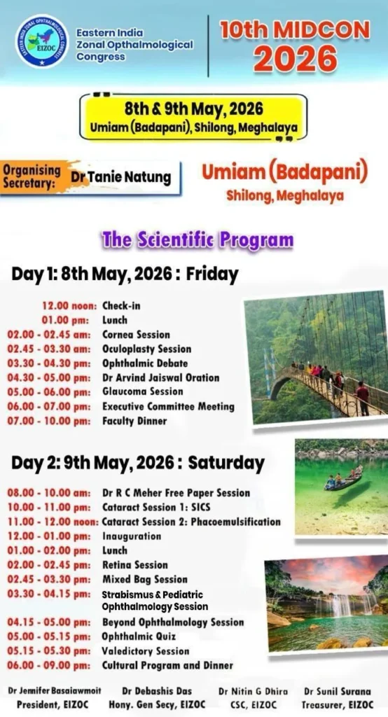 The reformation of the Eastern India Zonal Ophthalmological Congress (EIZOC) is spurred by a common vision amongst ophthalmologists throughout Eastern India to foster the exchange of knowledge and information on clinical, educational and research aspects among it’s members and growth of ophthalmology and visual sciences in Eastern India.